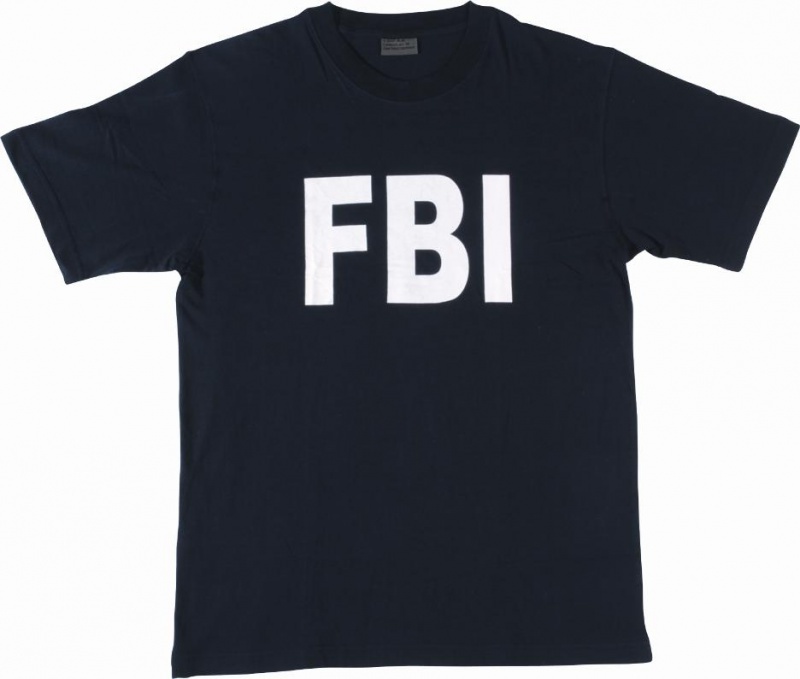 T-shirt 100% cotone nera con scritta FBI (Federal Bureau of Investigation) bianca.